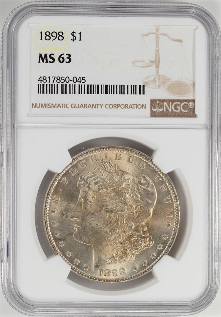 One 1898 $1 Morgan Silver Dollar Coin NGC MS63. NGC Certified.
