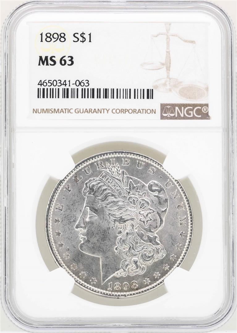 One 1898 $1 Morgan Silver Dollar Coin NGC MS63. NGC Certified.