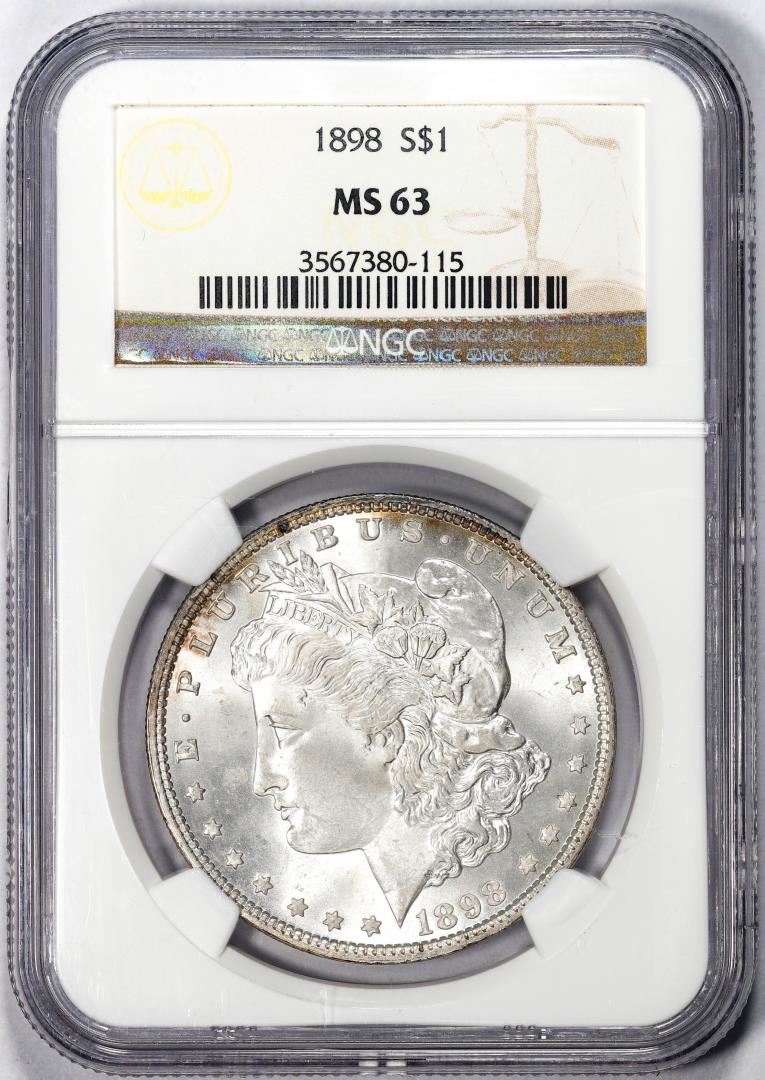 One 1898 $1 Morgan Silver Dollar Coin NGC MS63.