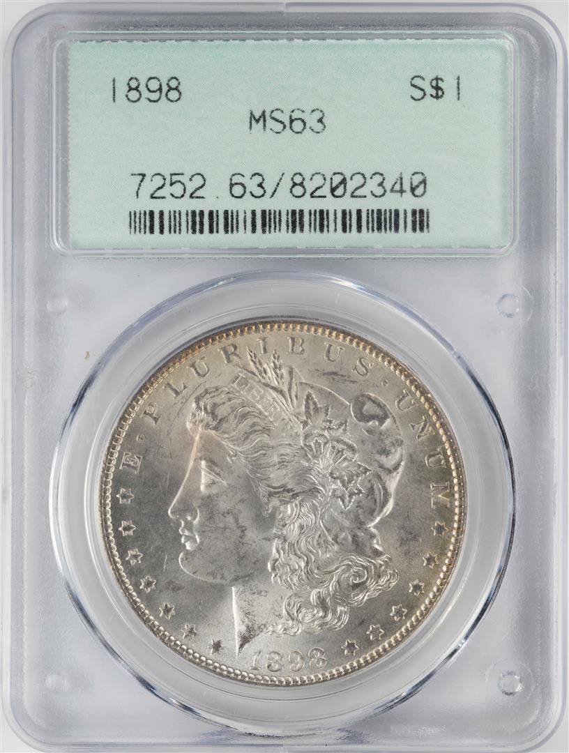 1898 $1 Morgan Silver Dollar Coin PCGS MS63 Old Green Holder
