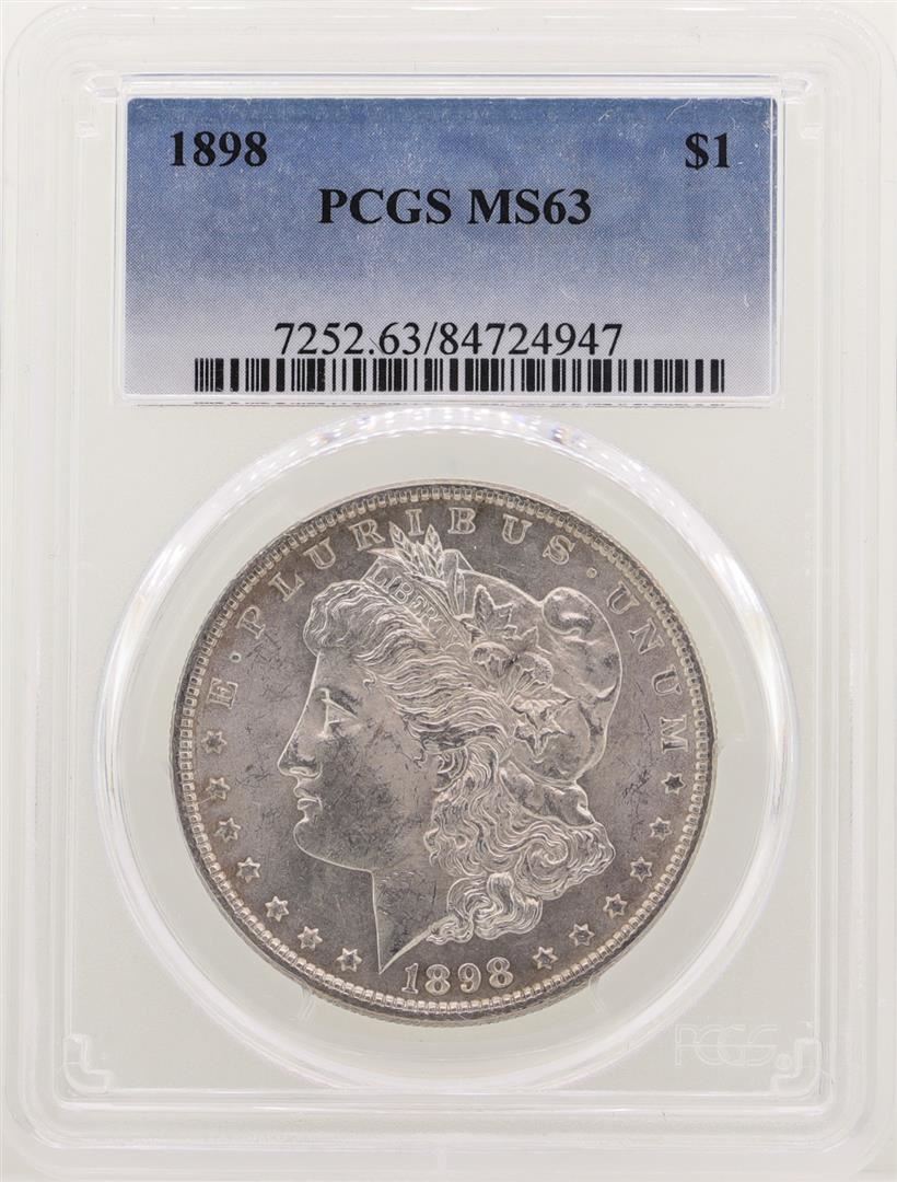 One 1898 $1 Morgan Silver Dollar Coin PCGS MS63. PCGS Graded.