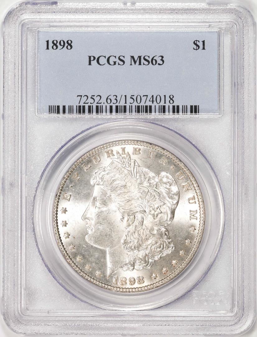 One 1898 $1 Morgan Silver Dollar Coin PCGS MS63. PCGS Graded.