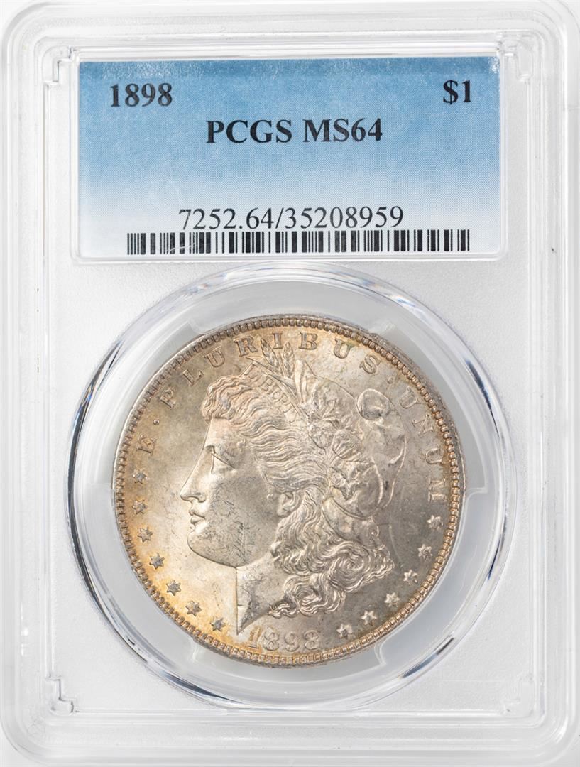 One 1898 $1 Morgan Silver Dollar Coin PCGS MS64. PCGS Graded.