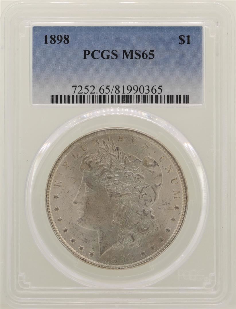 One 1898 $1 Morgan Silver Dollar Coin PCGS MS65. PCGS Graded.