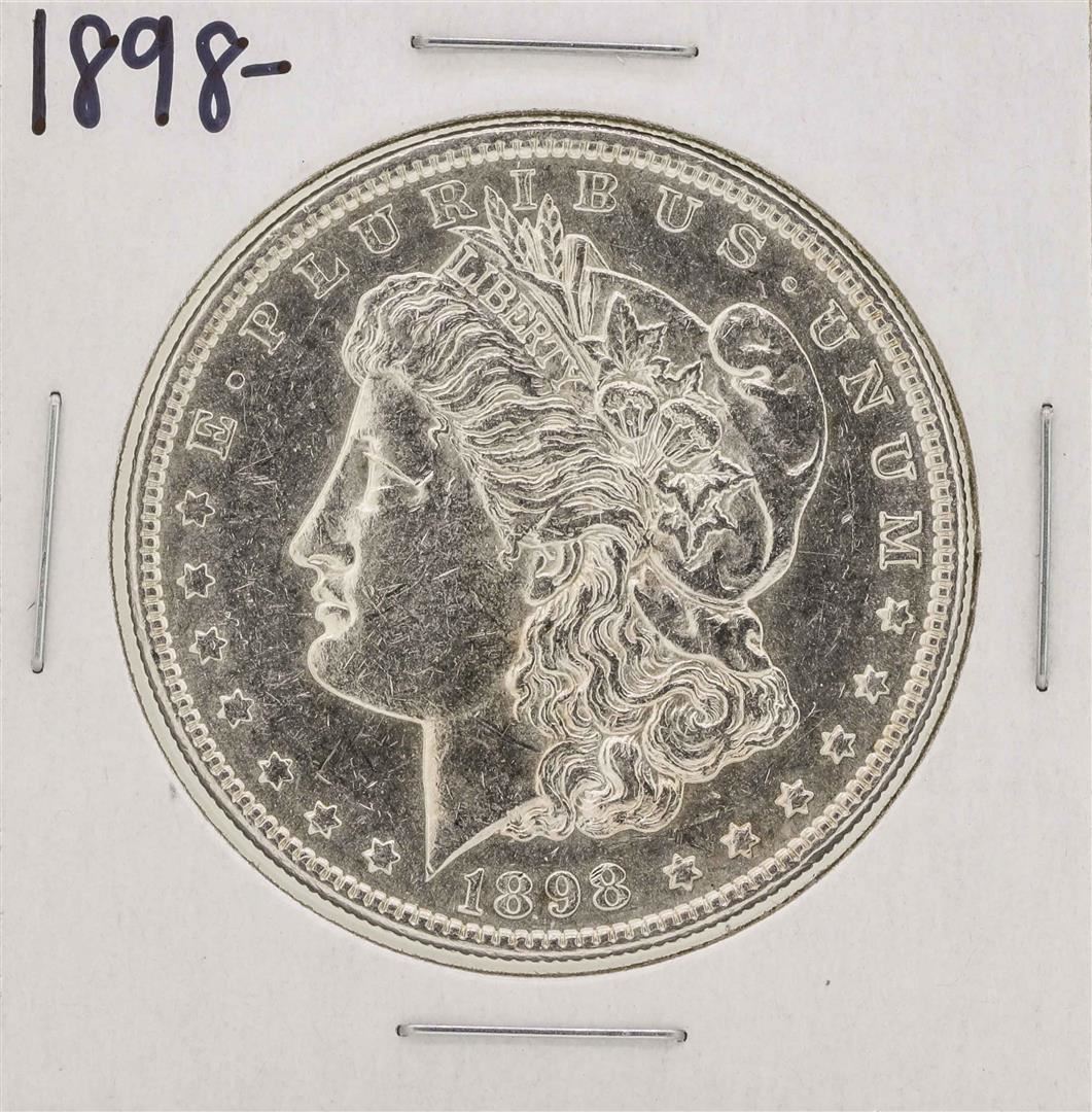 One 1898 $1 Morgan Silver Dollar Coin.