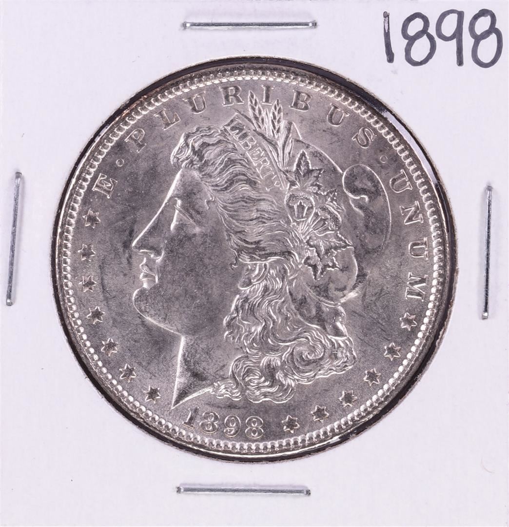 One 1898 $1 Morgan Silver Dollar Coin.