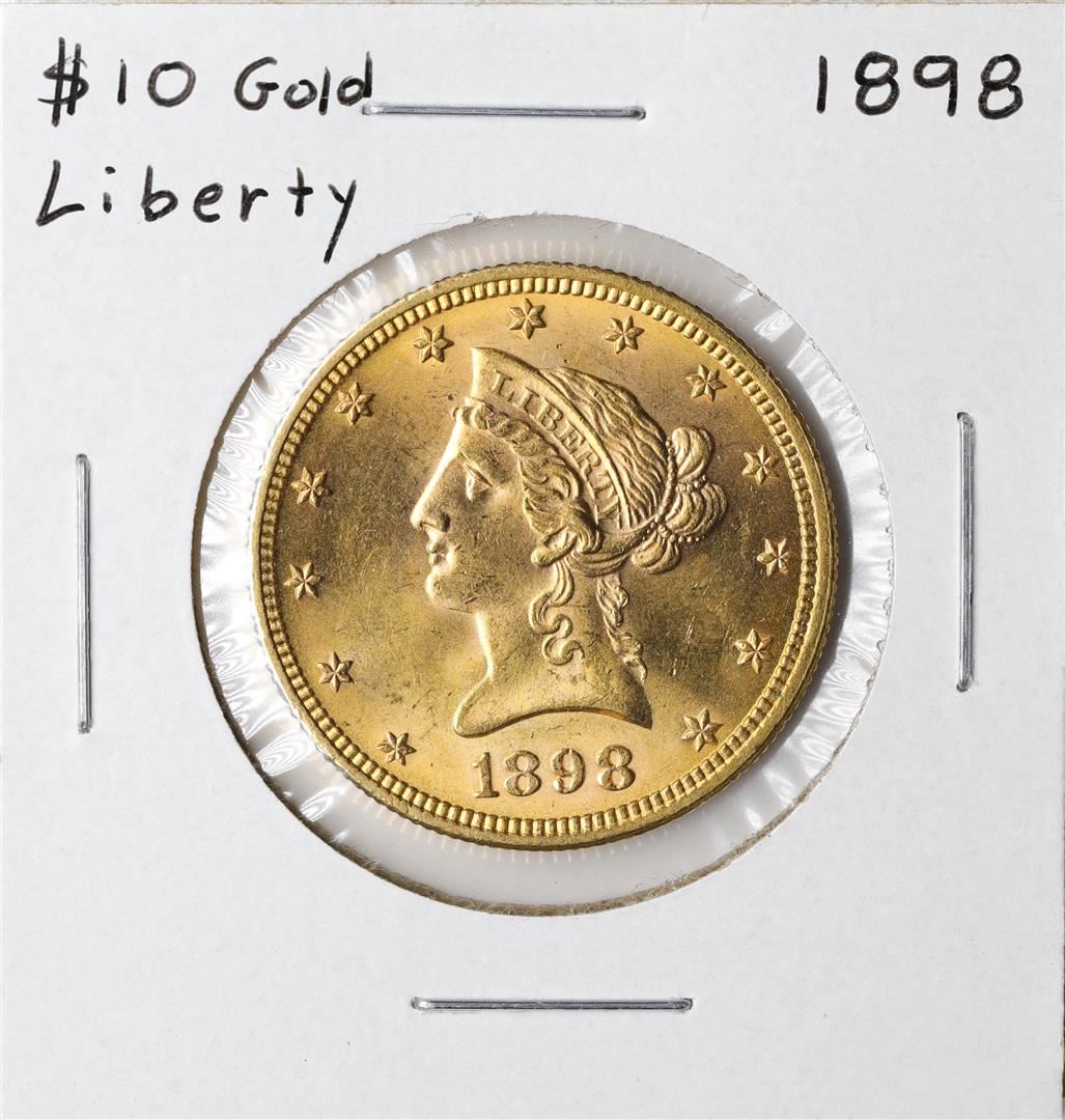One 1898 $10 Liberty Head Eagle Gold Coin.