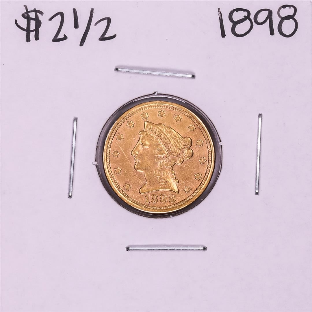 One 1898 $2 1/2 Liberty Head Quarter Eagle Gold Coin.