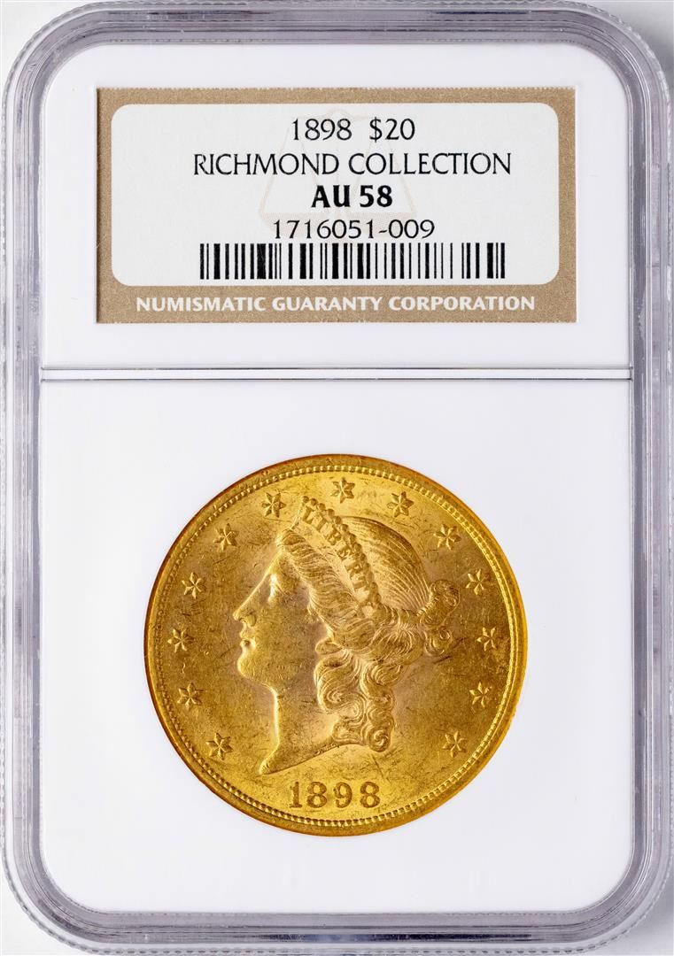 One 1898 $20 Liberty Head Double Eagle Gold Coin NGC AU58. NGC Certified.
