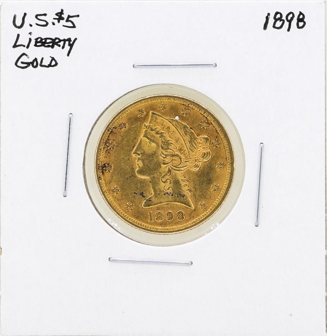 One 1898 $5 Liberty Head Half Eagle Gold Coin.