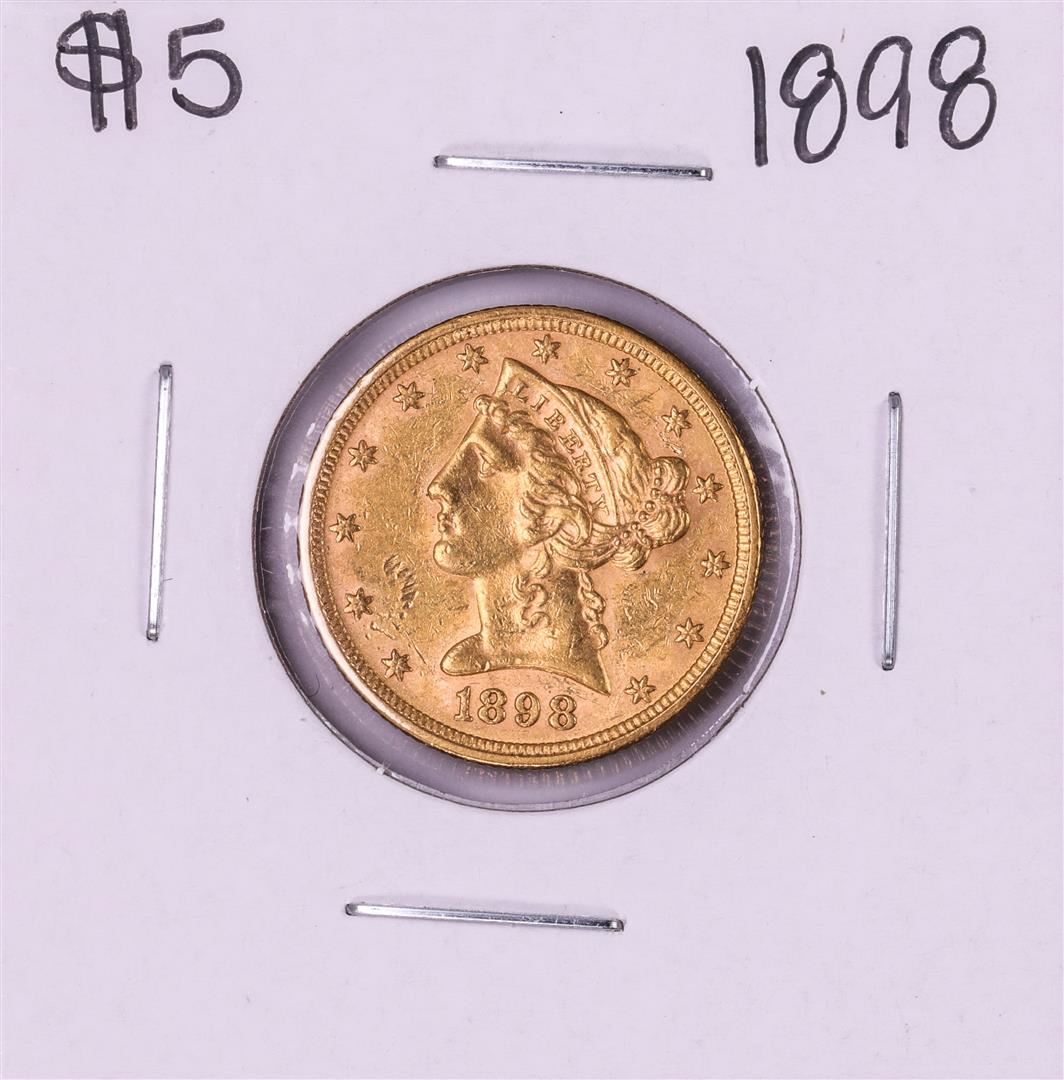 One 1898 $5 Liberty Head Half Eagle Gold Coin.