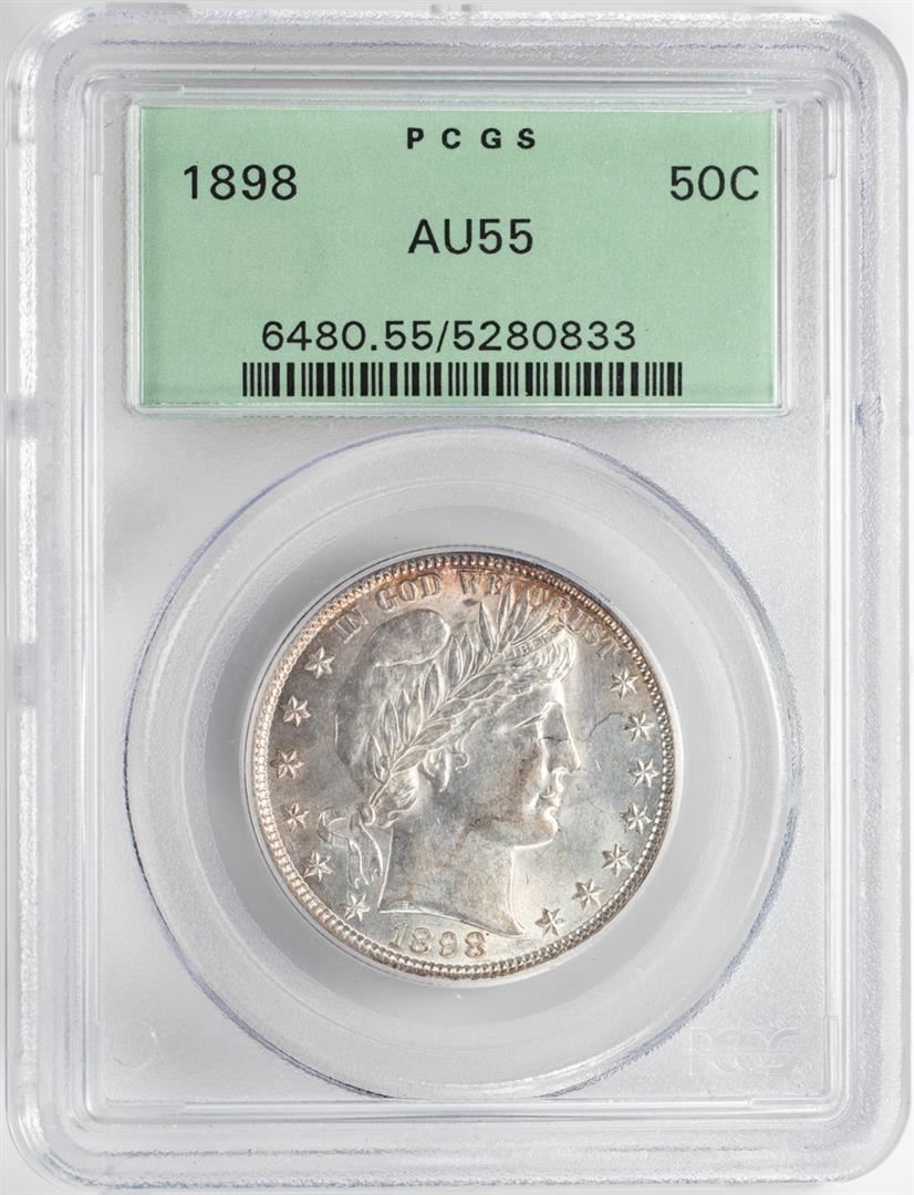 One 1898 Barber Half Dollar Coin PCGS AU55 Old Green Holder. PCGS Graded.