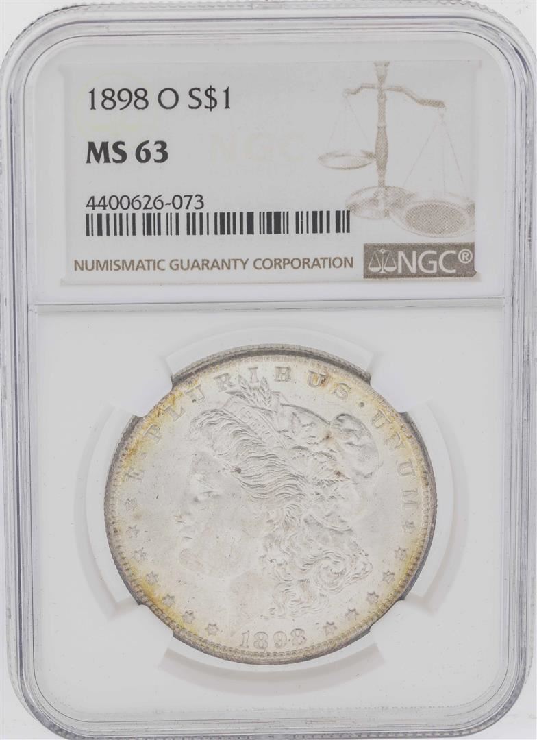 One 1898-O $1 Morgan Silver Dollar Coin NGC MS63. NGC Certified.