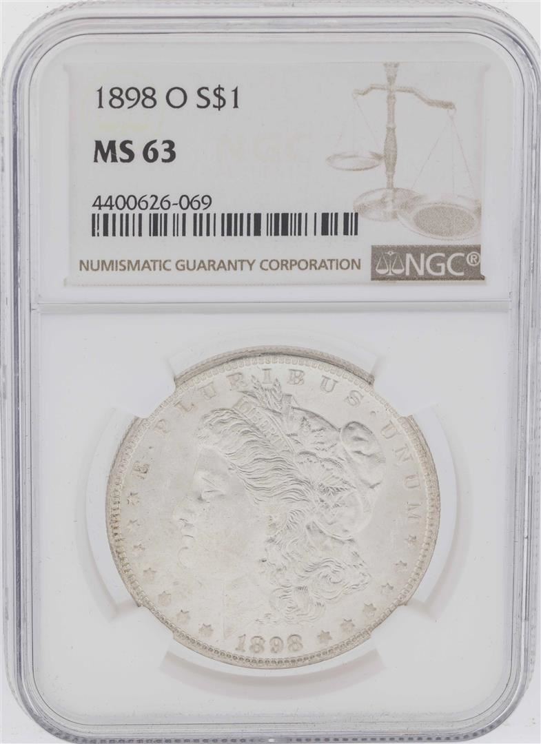 One 1898-O $1 Morgan Silver Dollar Coin NGC MS63. NGC Certified.