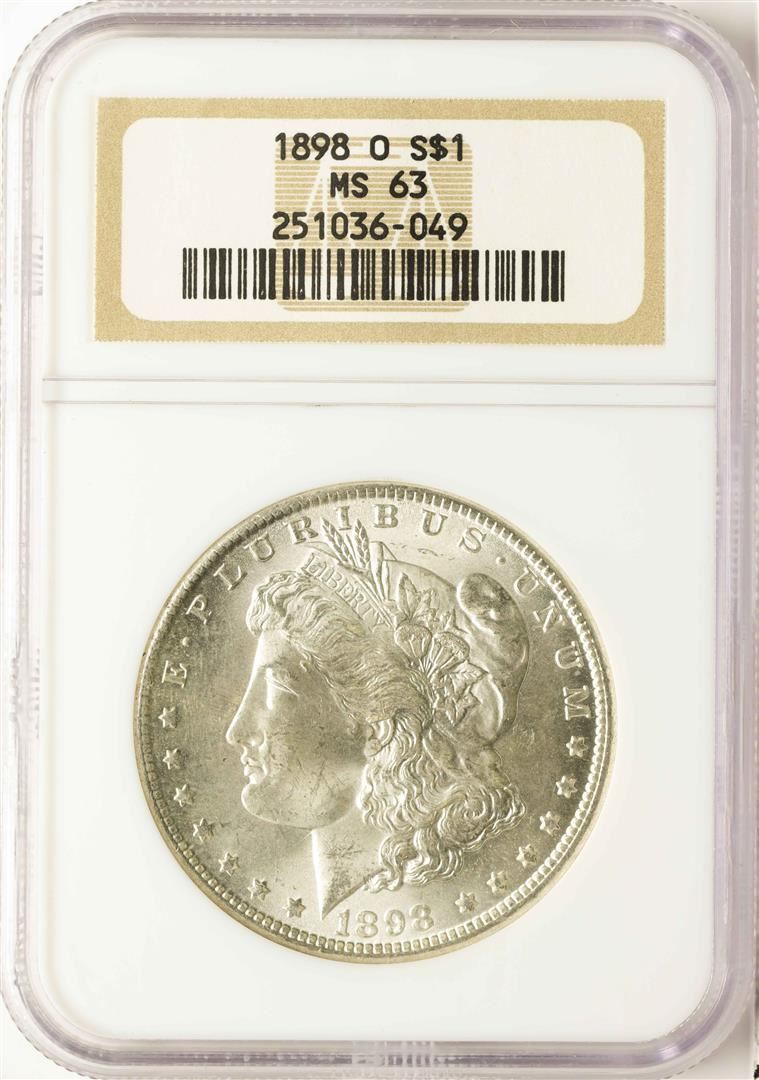 One 1898-O $1 Morgan Silver Dollar Coin NGC MS63. NGC Certified.