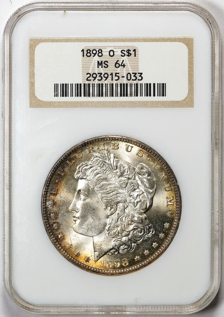 1898-O $1 Morgan Silver Dollar Coin NGC MS64 Nice Toning Old Fatty Holder