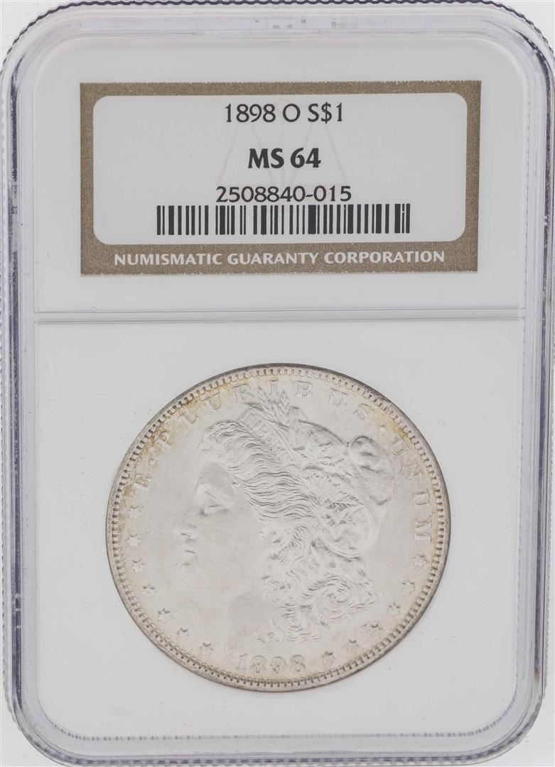 One 1898-O $1 Morgan Silver Dollar Coin NGC MS64. NGC Certified.