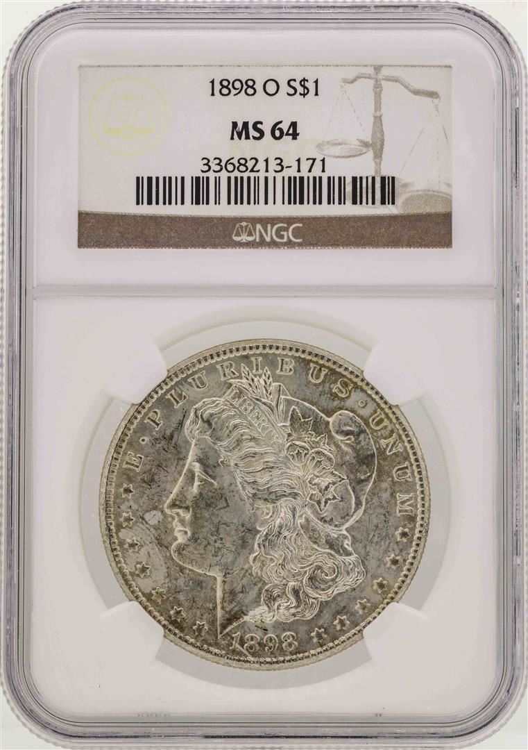 One 1898-O $1 Morgan Silver Dollar Coin NGC MS64. NGC Certified.