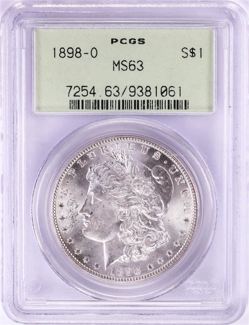 One 1898-O $1 Morgan Silver Dollar Coin PCGS MS63 Old Green Holder. PCGS Graded.