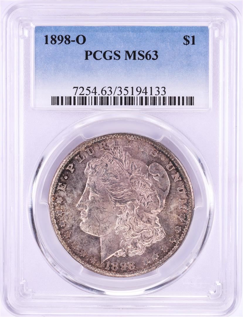 One 1898-O $1 Morgan Silver Dollar Coin PCGS MS63.