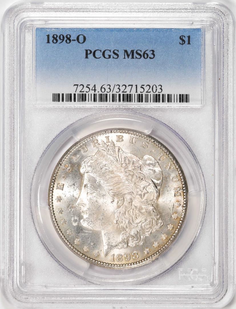 One 1898-O $1 Morgan Silver Dollar Coin PCGS MS63. PCGS Graded.