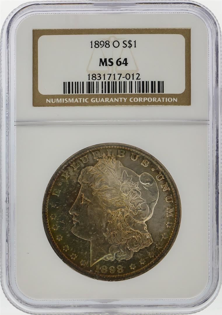 One 1898-O $1 Morgan Silver Dollar NGC Graded MS64. NGC Certified.