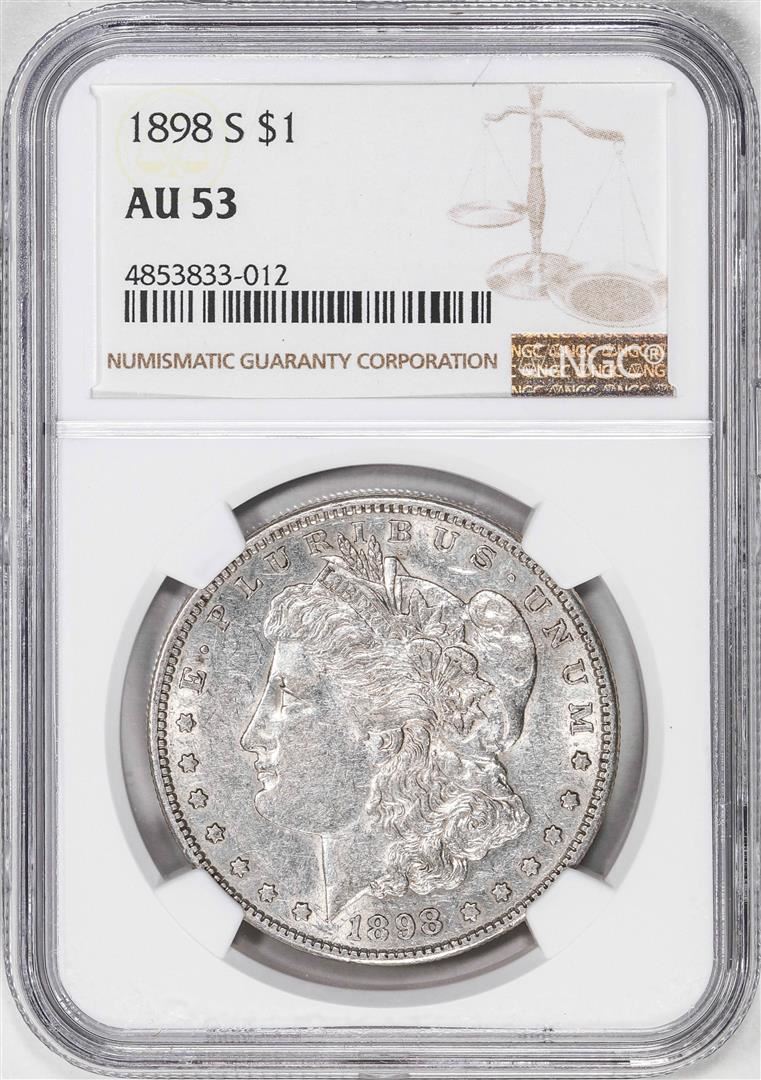 One 1898-S $1 Morgan Silver Dollar Coin NGC AU53. NGC Certified.