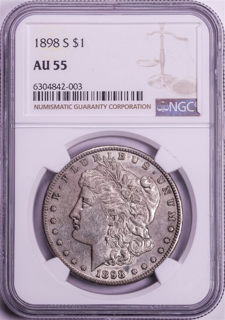 One 1898-S $1 Morgan Silver Dollar Coin NGC AU55. NGC Certified.