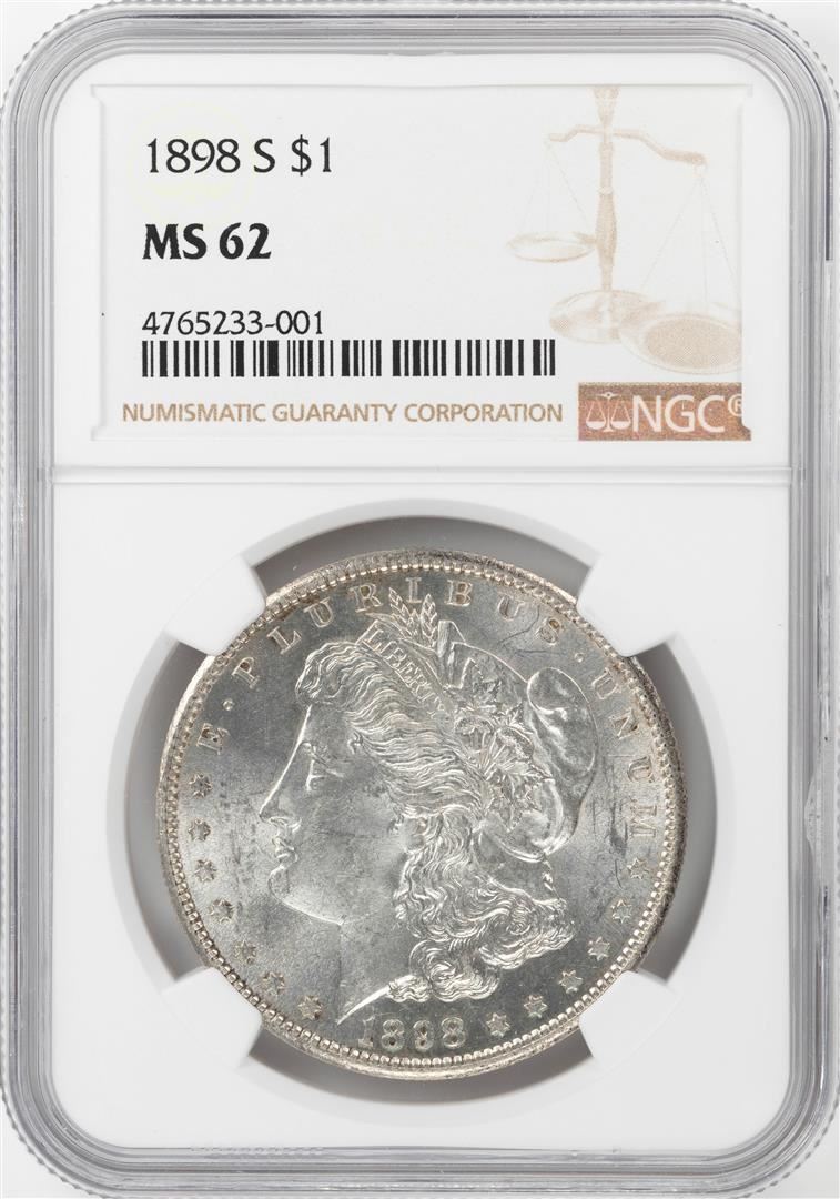 One 1898-S $1 Morgan Silver Dollar Coin NGC MS62. NGC Certified.