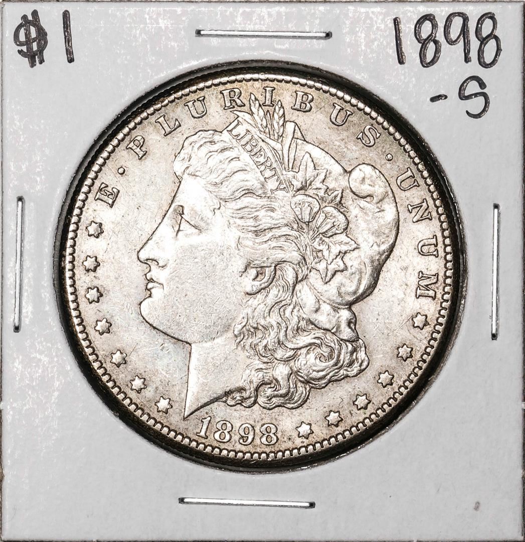 One 1898-S $1 Morgan Silver Dollar Coin.