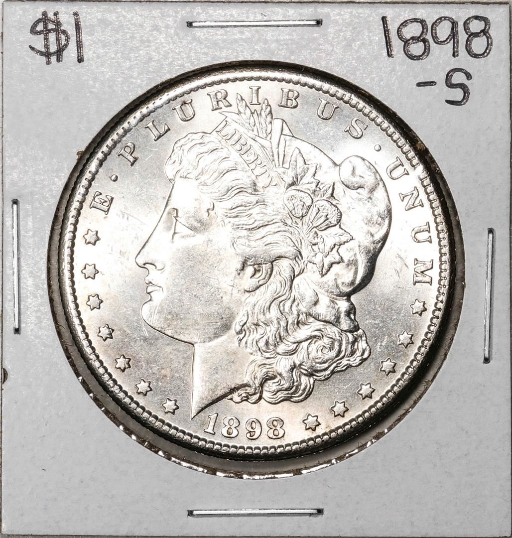 One 1898-S $1 Morgan Silver Dollar Coin.