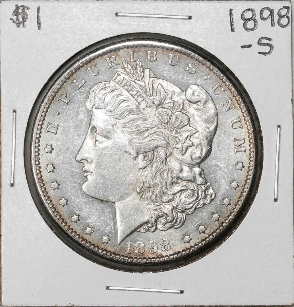 One 1898-S $1 Morgan Silver Dollar Coin.