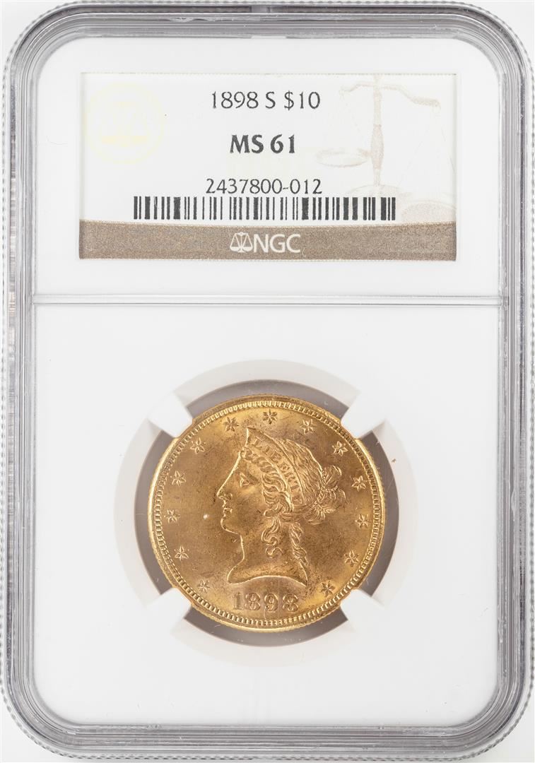 One 1898-S $10 Liberty Head Eagle Gold Coin NGC MS61. NGC Certified.