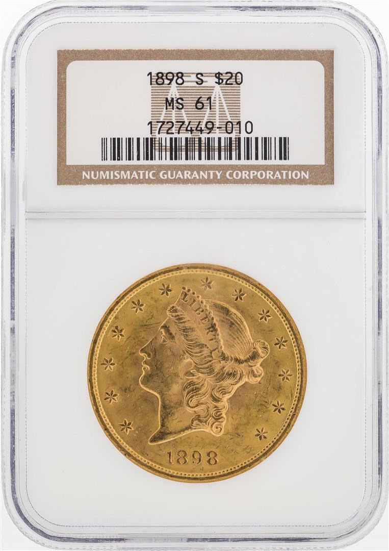 One 1898-S $20 Liberty Head Double Eagle Gold Coin NGC MS61. NGC Certified.