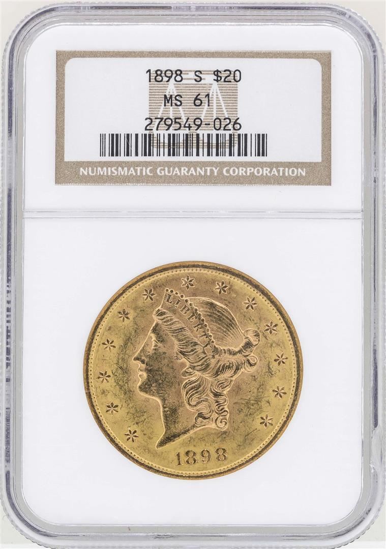 One 1898-S $20 Liberty Head Double Eagle Gold Coin NGC MS61. NGC Certified.