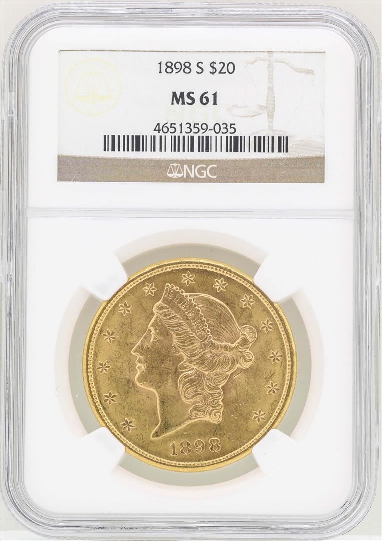 One 1898-S $20 Liberty Head Double Eagle Gold Coin NGC MS61. NGC Certified.