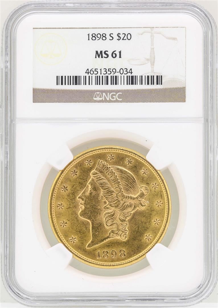 One 1898-S $20 Liberty Head Double Eagle Gold Coin NGC MS61. NGC Certified.
