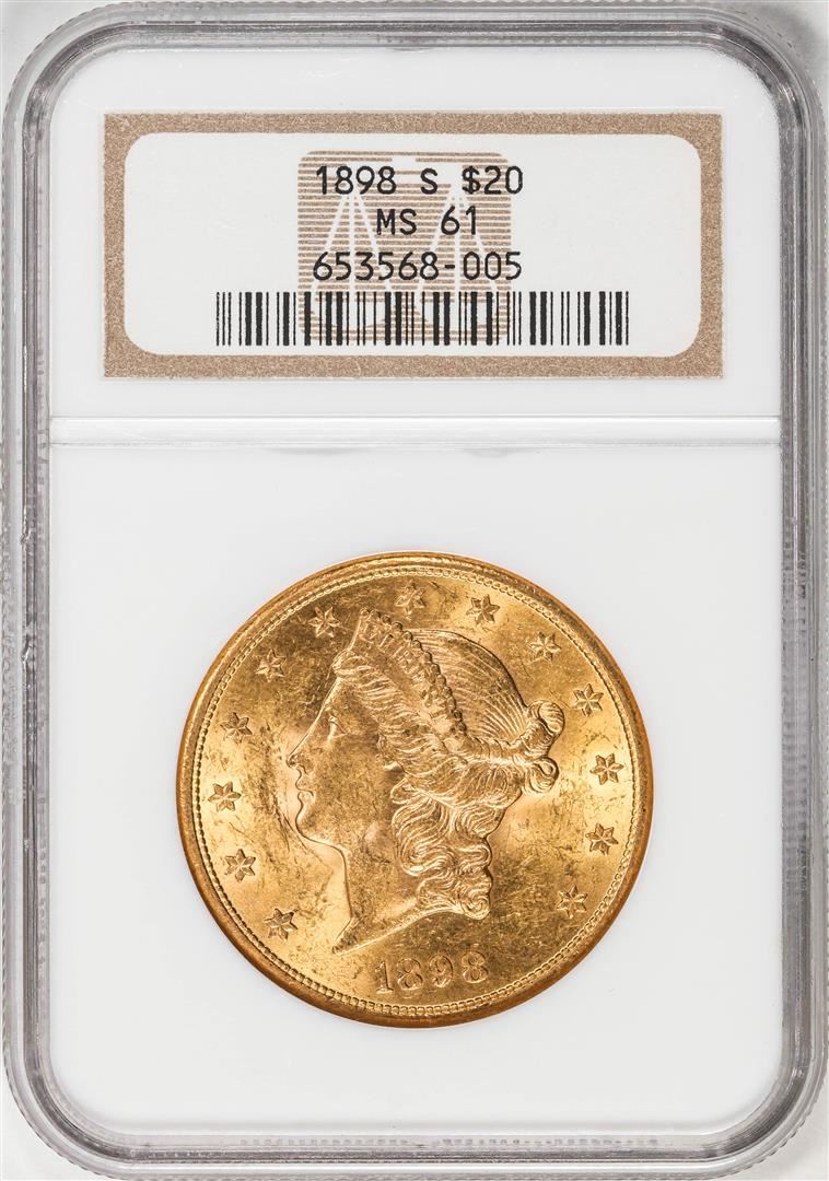 One 1898-S $20 Liberty Head Double Eagle Gold Coin NGC MS61. NGC Certified.