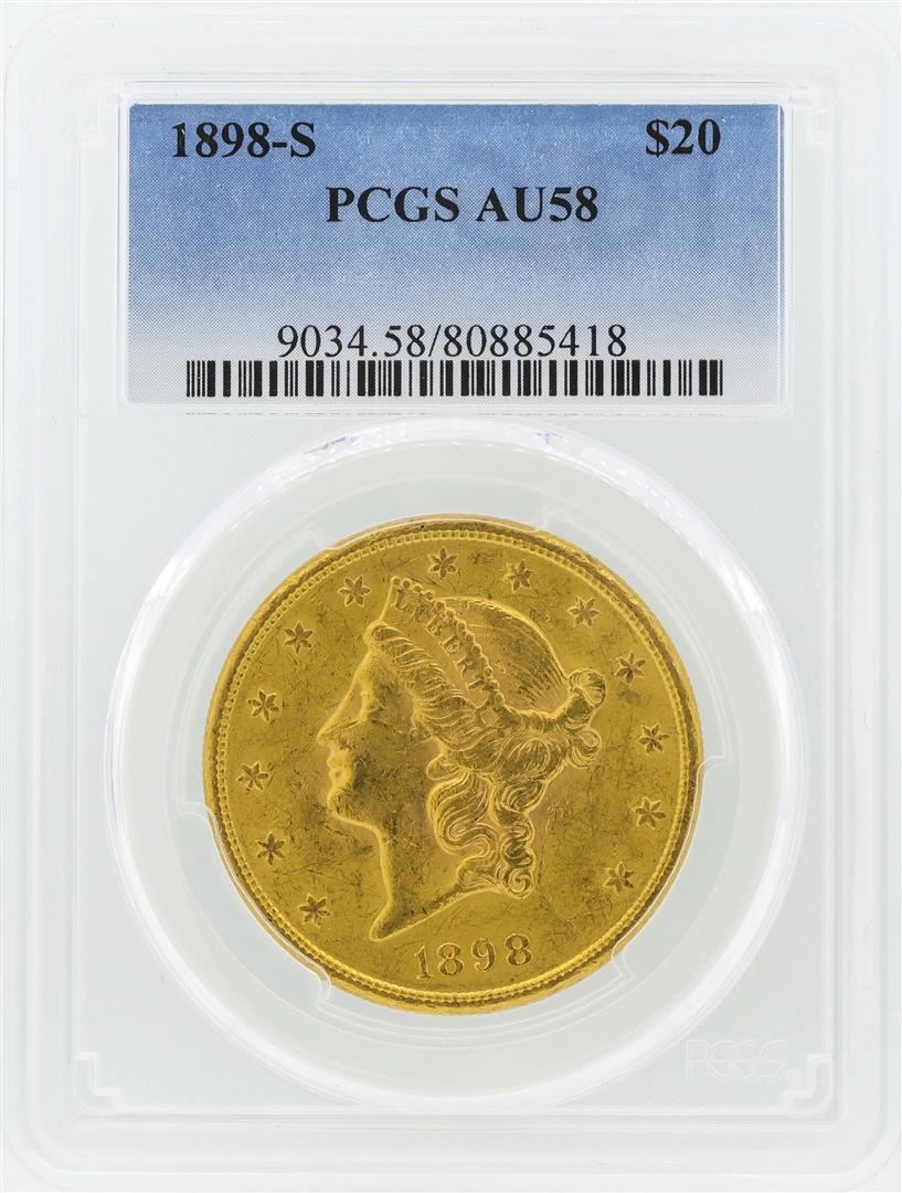 One 1898-S $20 Liberty Head Double Eagle Gold Coin PCGS AU58. PCGS Graded.