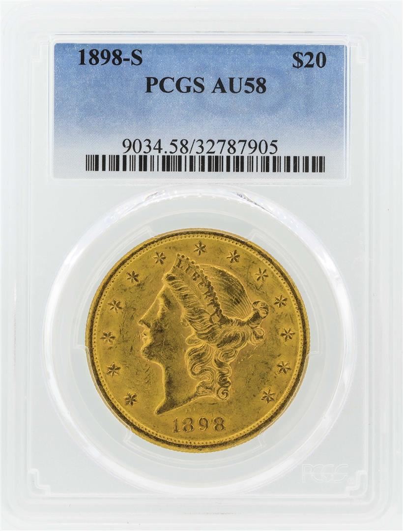 One 1898-S $20 Liberty Head Double Eagle Gold Coin PCGS AU58. PCGS Graded.