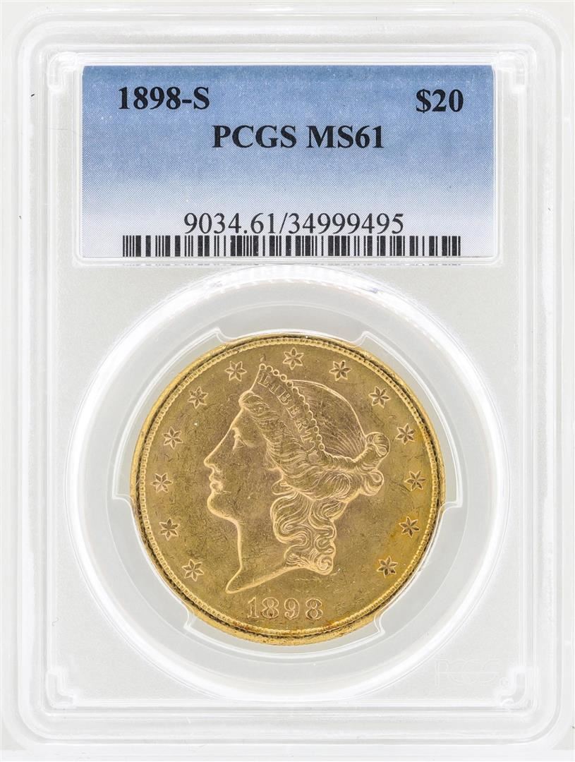 One 1898-S $20 Liberty Head Double Eagle Gold Coin PCGS MS61. PCGS Graded.