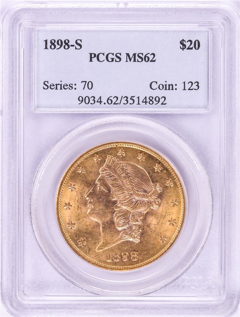 One 1898-S $20 Liberty Head Double Eagle Gold Coin PCGS MS62. PCGS Graded.