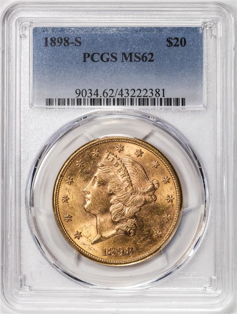 One 1898-S $20 Liberty Head Double Eagle Gold Coin PCGS MS62. PCGS Graded.