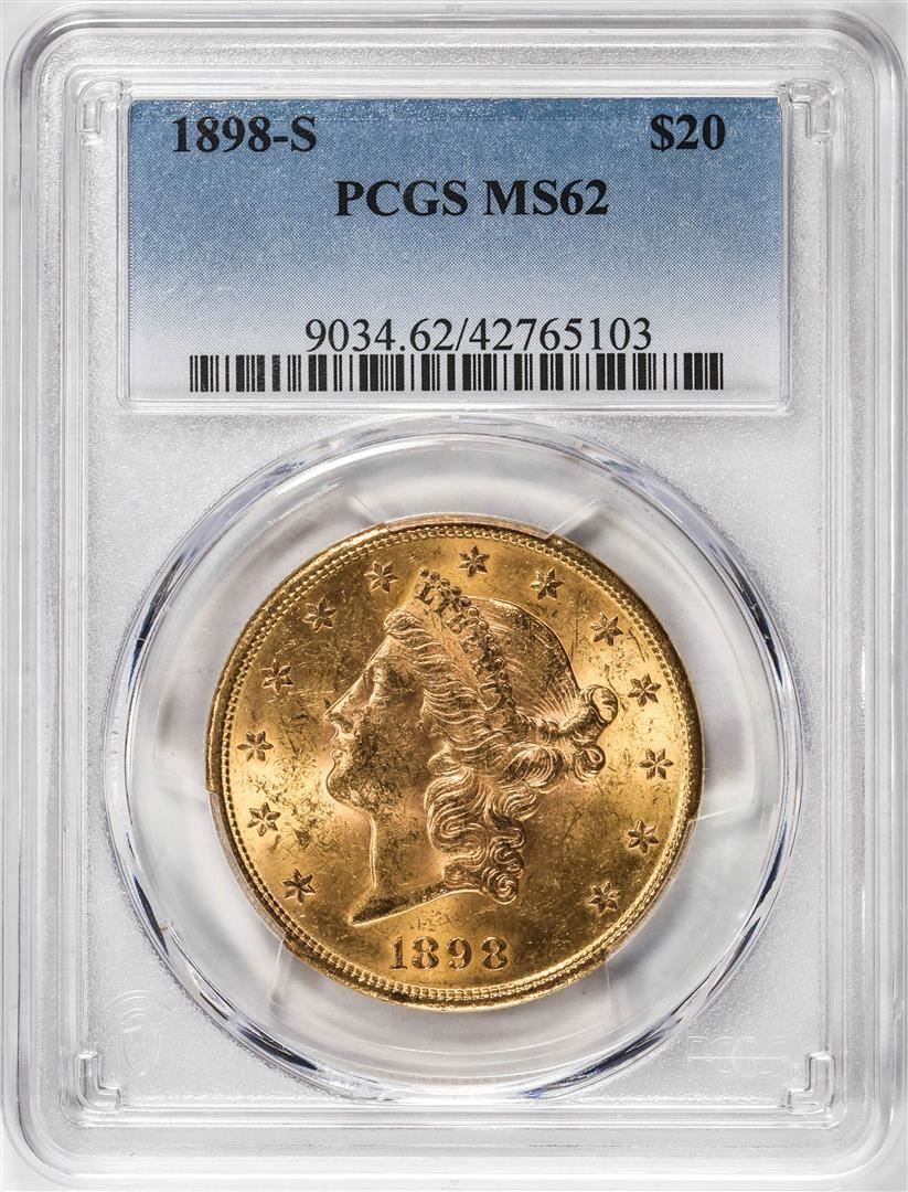 One 1898-S $20 Liberty Head Double Eagle Gold Coin PCGS MS62. PCGS Graded.