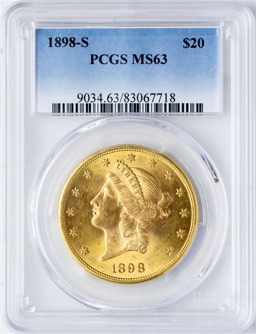 One 1898-S $20 Liberty Head Double Eagle Gold Coin PCGS MS63. PCGS Graded.
