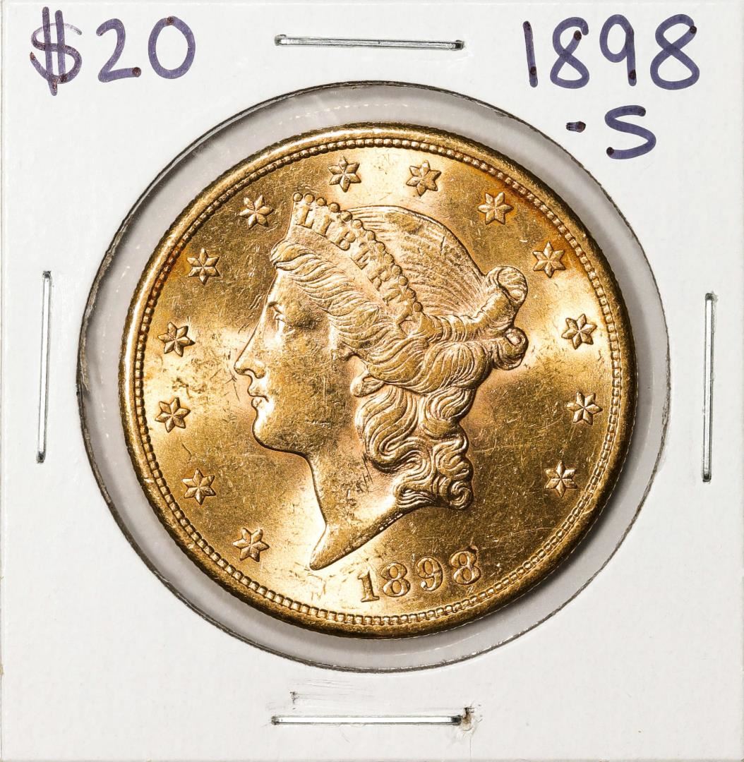 One 1898-S $20 Liberty Head Double Eagle Gold Coin.