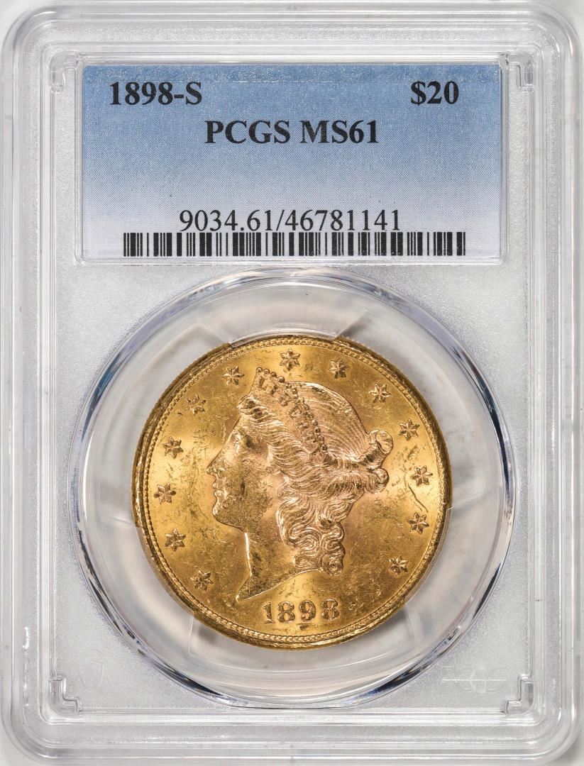 One 1898-S $20 Liberty Head Eagle Gold Coin PCGS MS61. PCGS Graded.