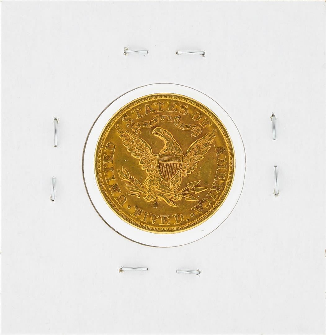 One 1898-S $5 Liberty Head Half Eagle Gold Coin AU.