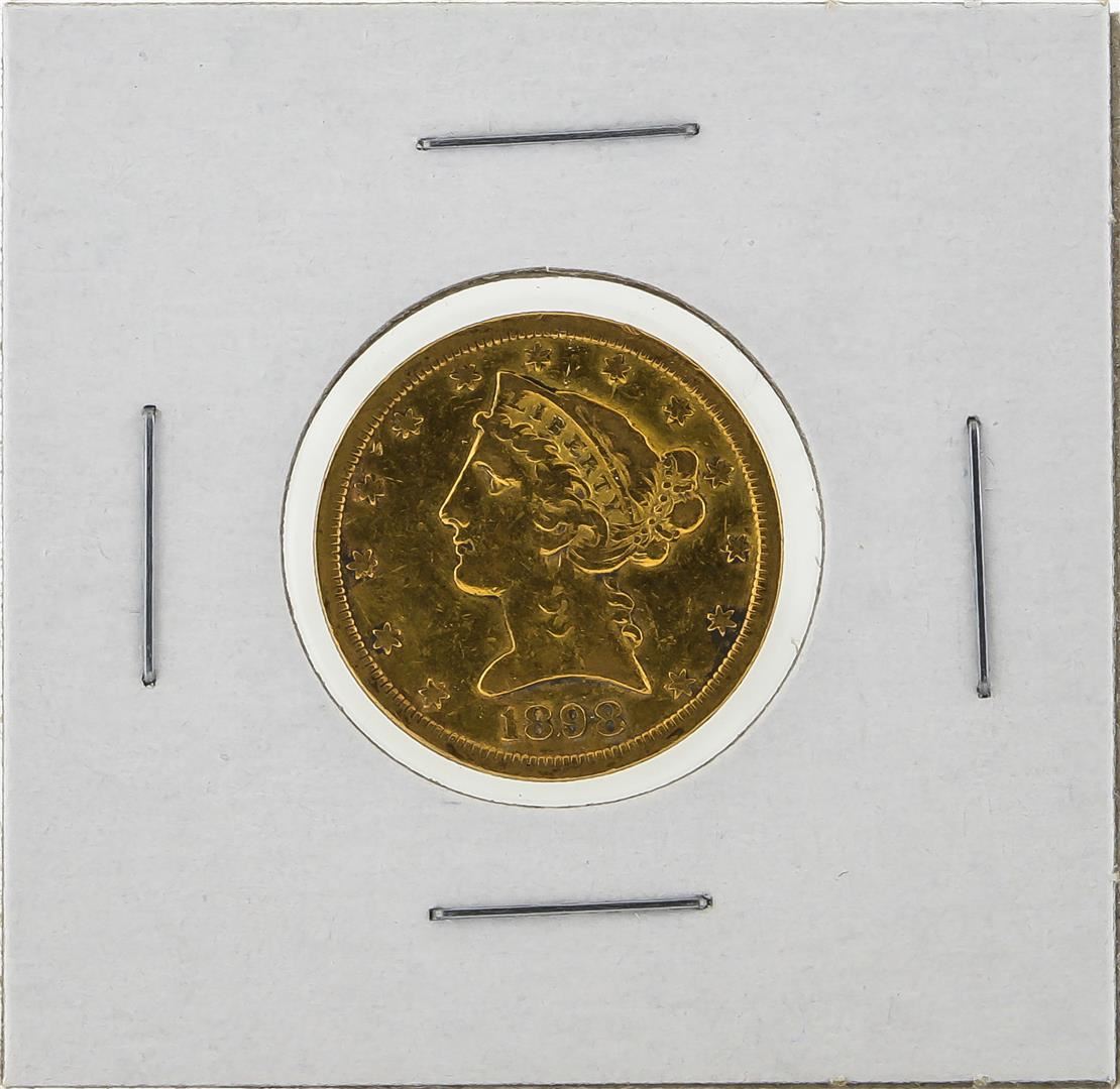 One 1898-S $5 Liberty Head Half Eagle Gold Coin.