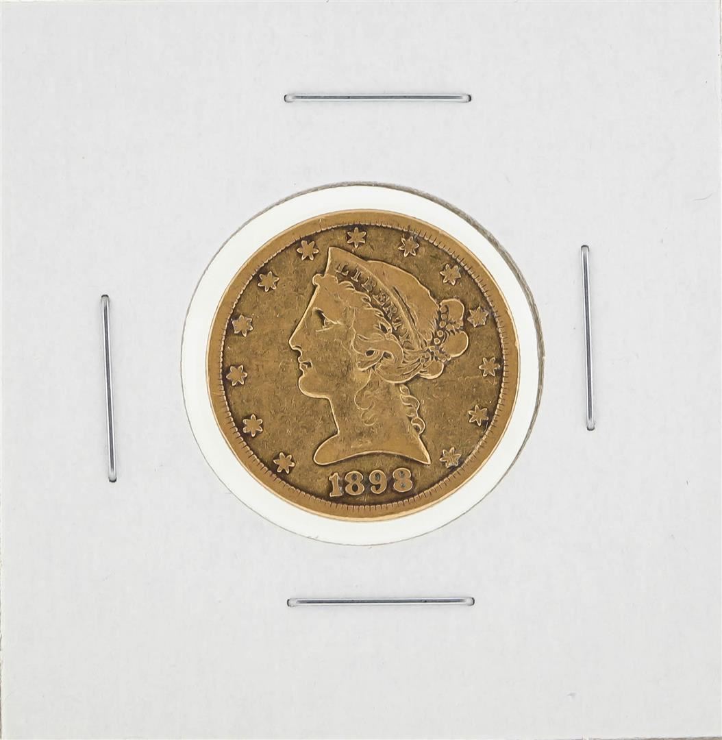 One 1898-S $5 Liberty Head Half Eagle Gold Coin.